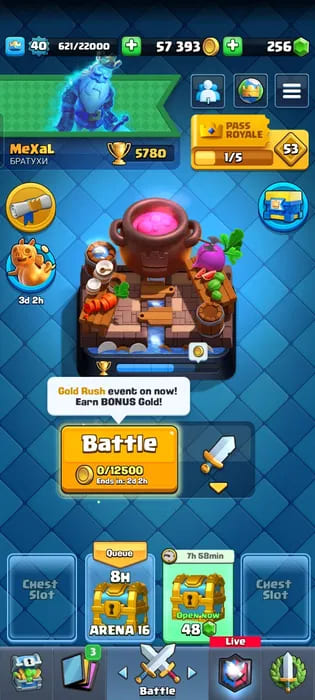 🃏Карты: 104/107; ⚡Легендарные карты: 18/18; 🏆Кубки: 5813;