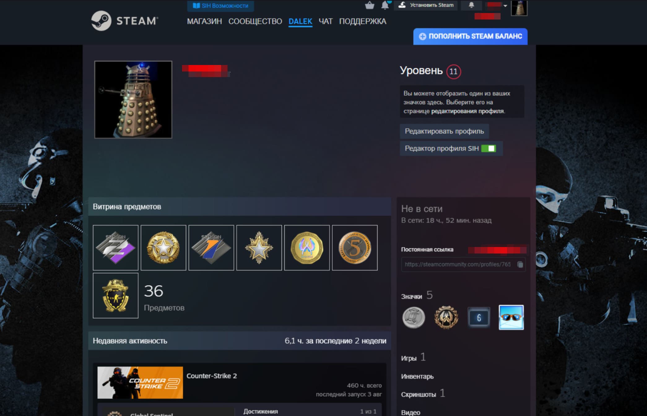 ⭐️Звание: Global Elite; 🌟Prime Status: Есть; ⏱️Часов в игре: 5752;