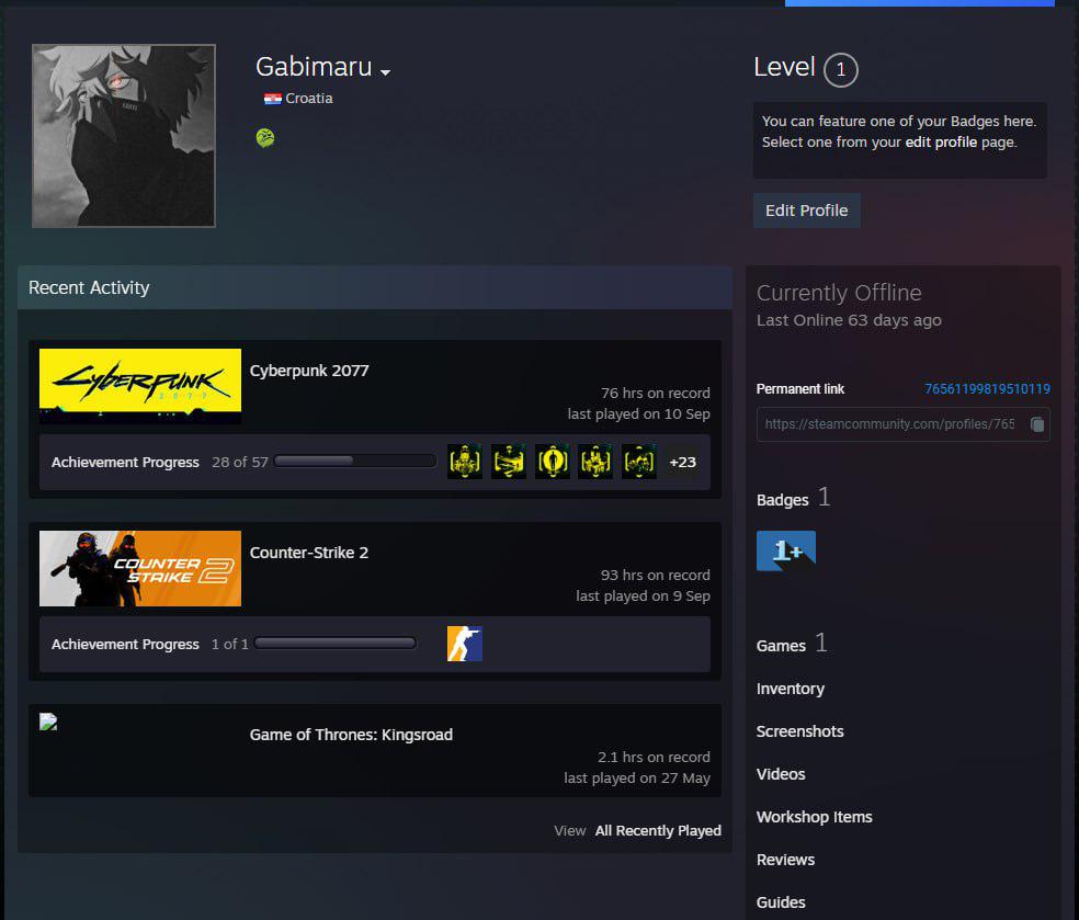 ⭐️Звание: Gold Nova 3; 🌟Prime Status: Есть; ⏱Часов в игре: 93;