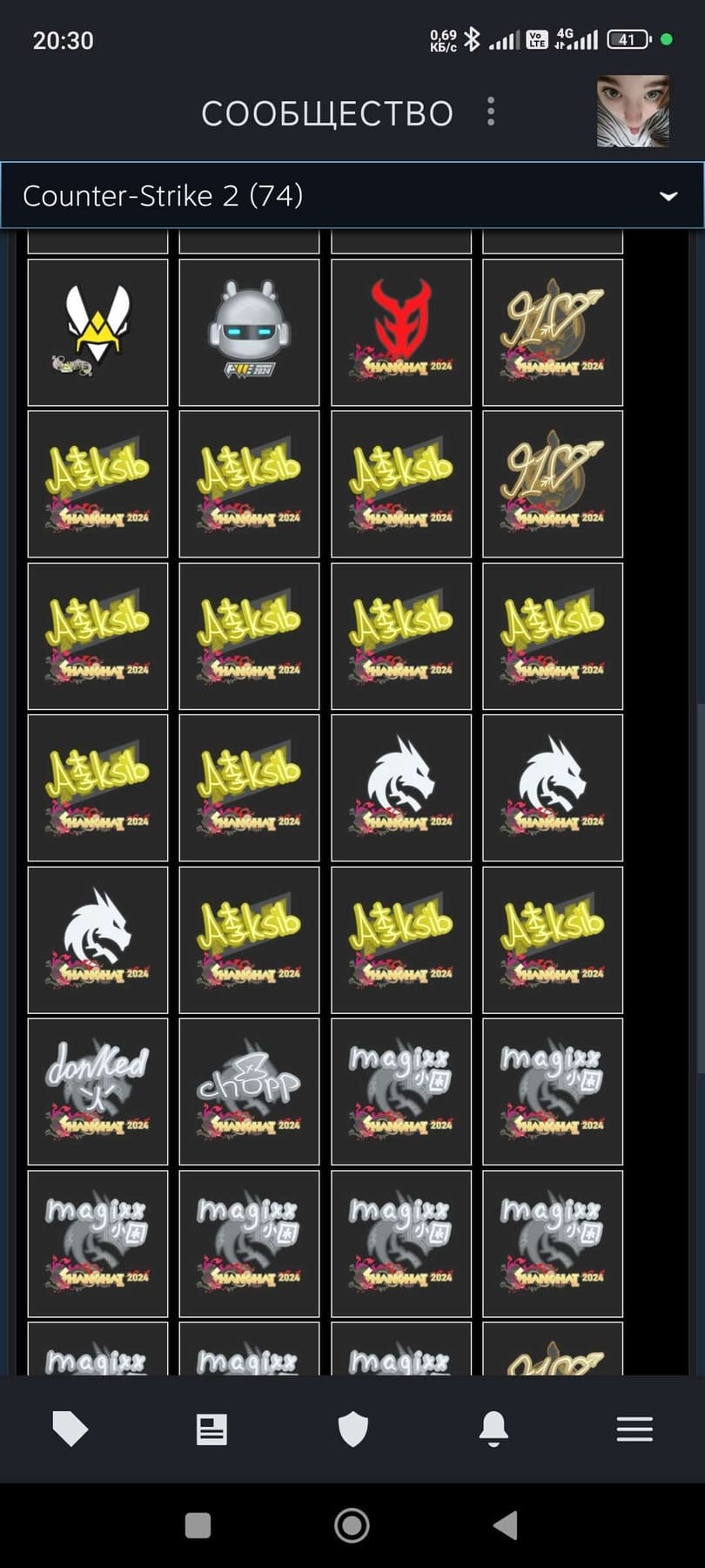 ✨Предметов в инвентаре: 74;