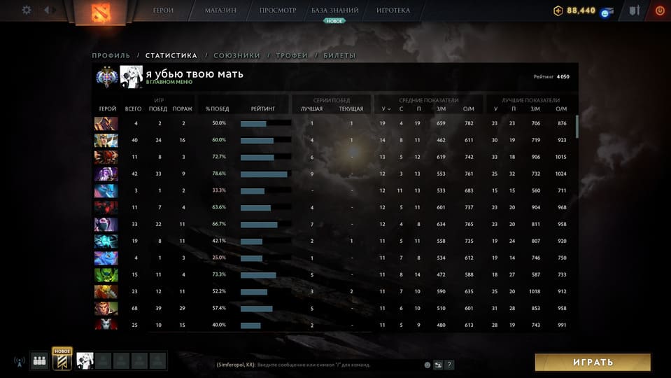 ⭐️Рейтинг: 1710 ⏱Часов в игре:4108 💥Порядочность: 7667