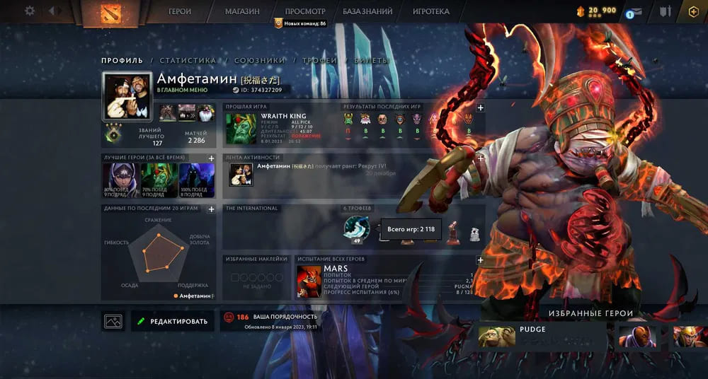 ⭐️Рейтинг: 900 ⏱Часов в игре:2600 💥Порядочность: 186