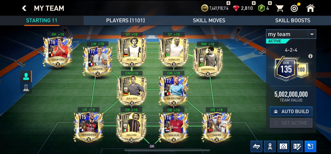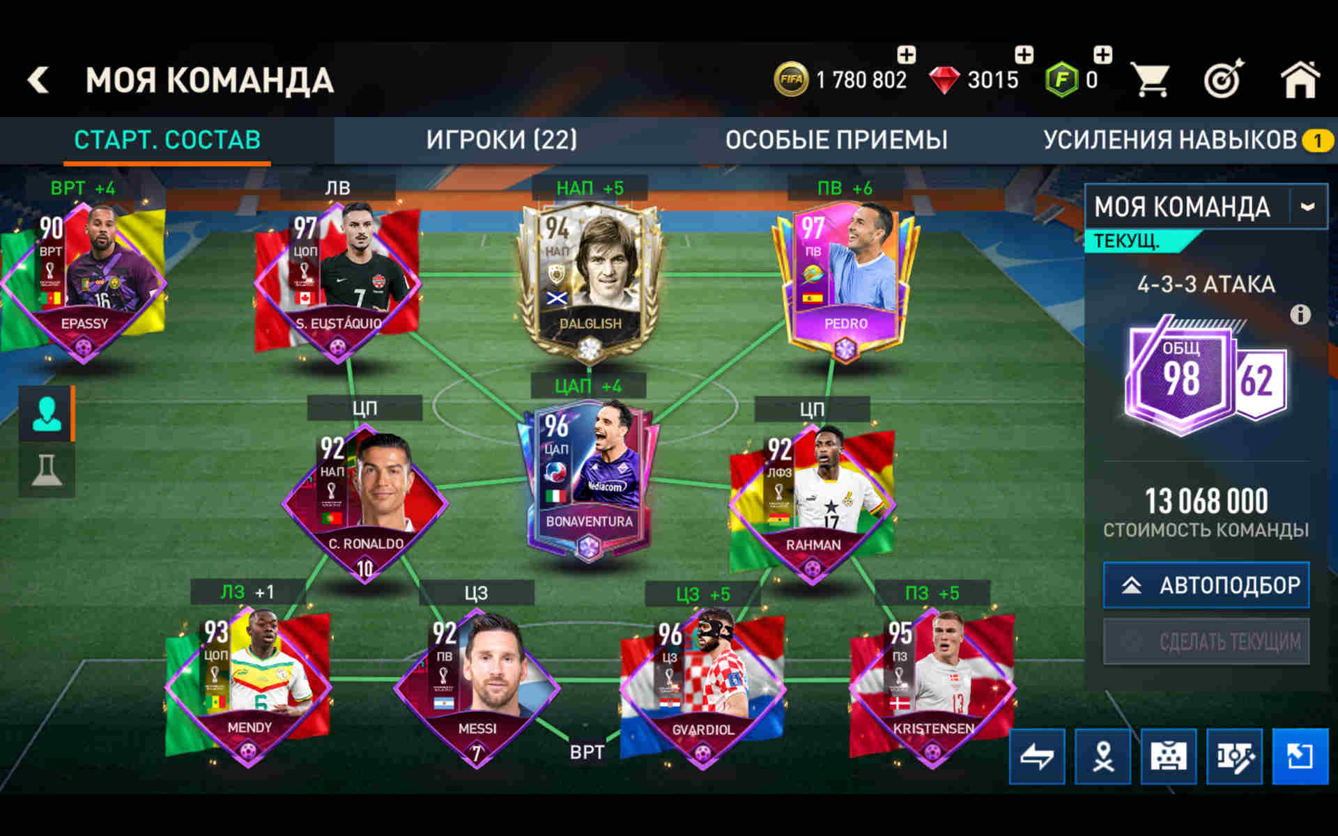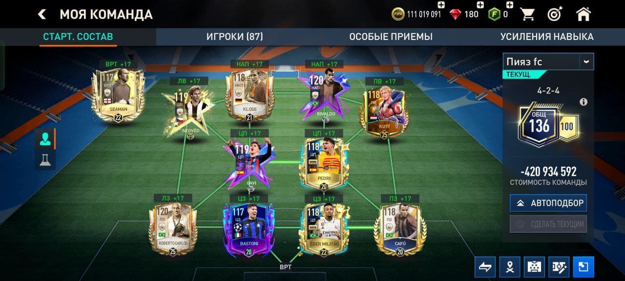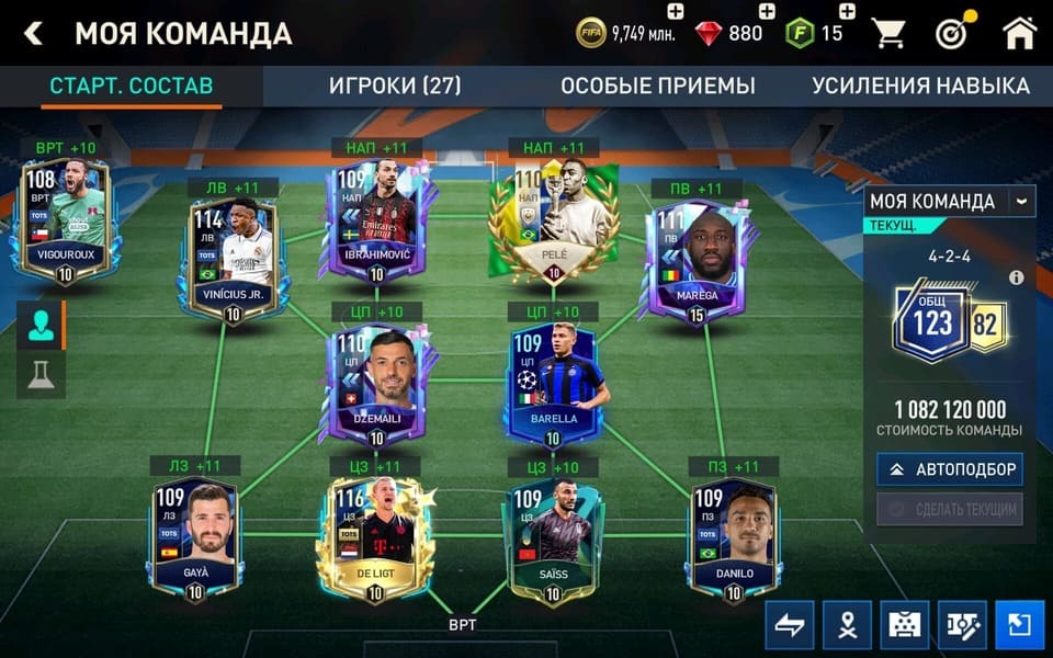 💰Золото: 9 749 000📗Fifa-point: 15🛑880💪 Игроки : 27