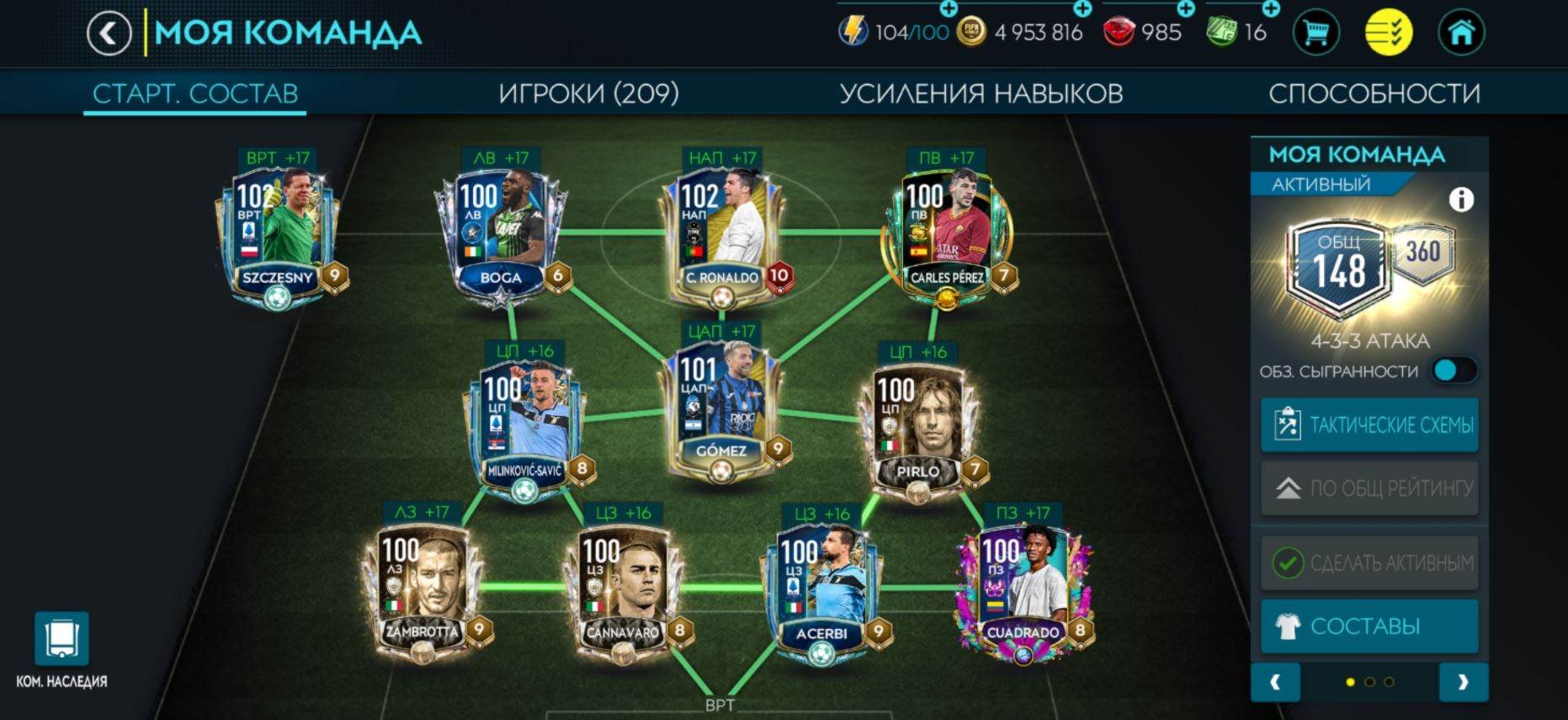 📈LVL 148/360 💰Золото: 5кк 📗Fifa-point: 16 🛑985💪 Игроки : 209