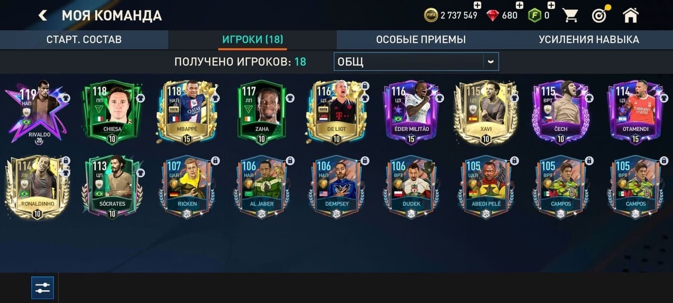 💰Золото: 2 737 549📗Fifa-point: 0 🛑680💪 Игроки : 18