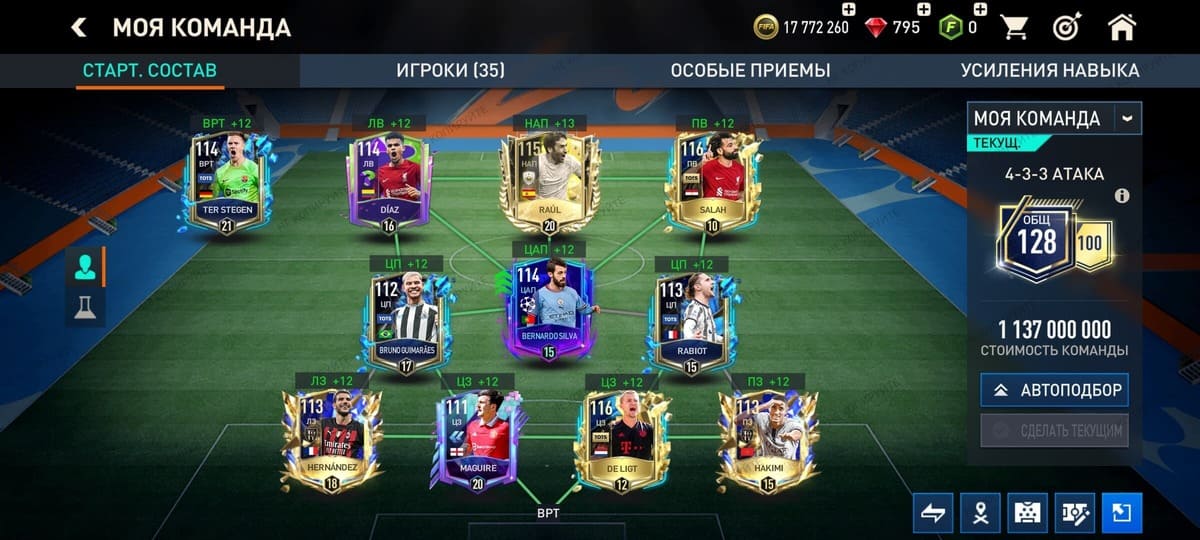 💰Золото: 17 772 260📗Fifa-point: 0🛑795💪 Игроки : 35