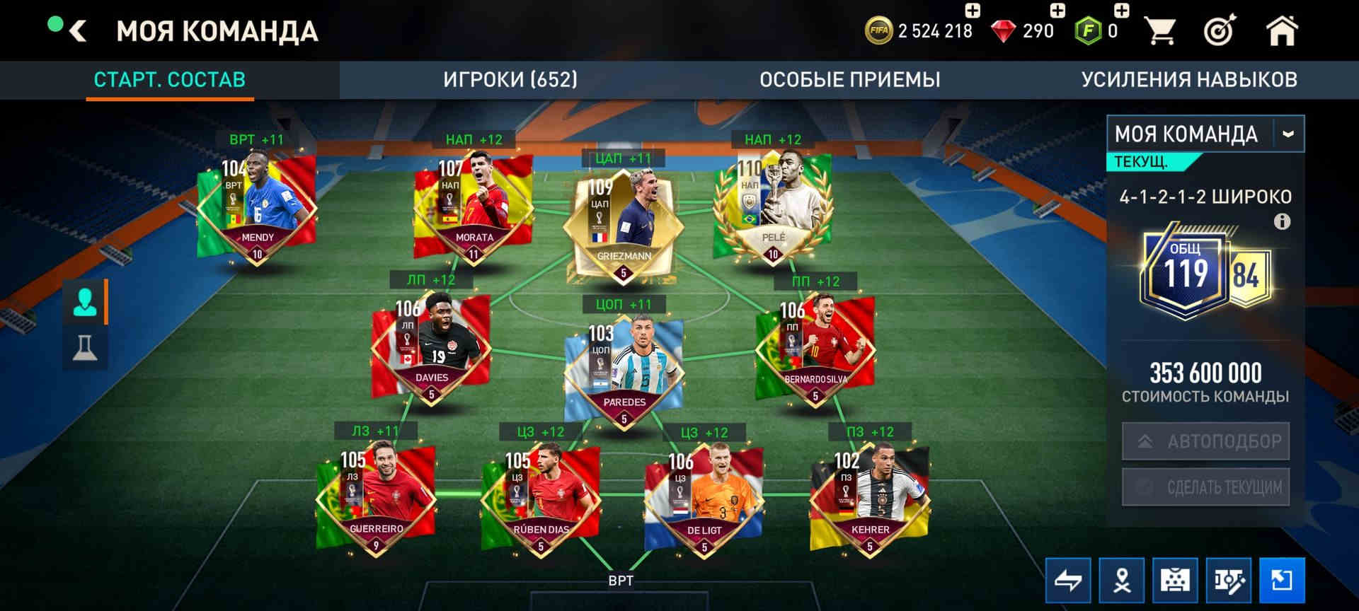 💰Золото: 19 834 974 203 📗Fifa-point: 6 🛑934 💪 Игроки : 661