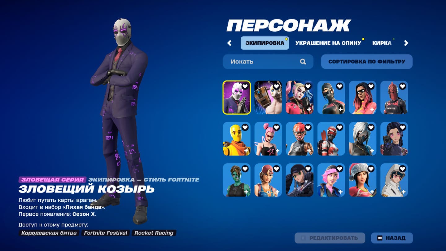 ⭐️ Боевой пропуск: 1-12 сезон⚔️ PVE💥 Всего скинов: 156🔥 Топ скины: 15+💰 250V Bucks