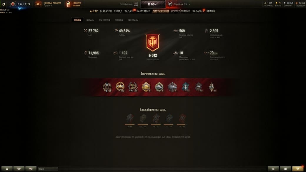 🎌Боев: 58 000 ❌Топы: Т-62А, Объект 268, ИС-7, Объект 140, ИС-4, Объект 261, VK 72.01 (K), Maus, E-100, Leopard 1, G.W. E 100, Grille 15, JagdPz E-100, E-50 Ausf. M, T110E5, T110E4, AMX 50 Foch (155), Bat.-Chatillon 25 t, AMX 50 B, FV215b (183) ❌Премы: ИС-6, VK 72.01 (K), Löwe, 8,8 cm PaK 43 JagdTiger, E-25VII, T34, T26E4 SuperPershing, AMX 50 Foch (155), FV215b (183) ❌10 ур. - 20 шт. ❌8 ур. - 5 шт. ❌7 ур. - 6 шт. ❌5 ур - 3 шт. 🏆Процент побед: 50% 💰Золота: 71 💰Количество кредитов: 106 тыс ⭐Свободного опыта: 15 470 ✅Доступ к родной почте: Да