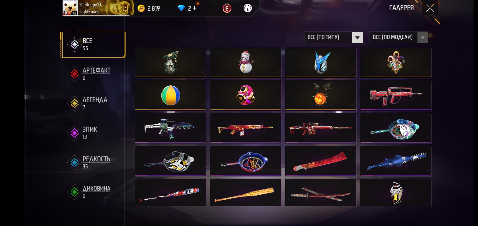 🌈Скины на оружие: 55;