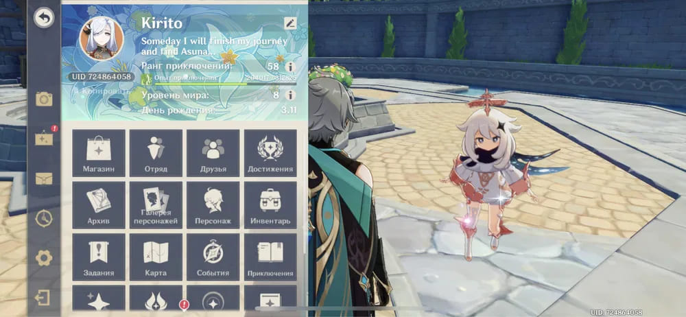 📈 Ранг: 58 🧍♀️ Персонажи: Аяка, Кадзуха, Сяо, Гань Юй, Чжун Ли, Венти, Мона, Дилюк, Ци Ци и другие ✨ Примогемы: 2100