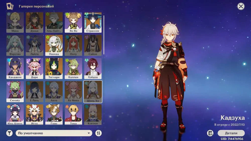 📈 Ранг: 56 🧍♀️ Персонажи: Странник, Нахида, Тигнари, Итто, Кадзуха, Аяка, Ху Тао, Сяо и другие ✨ Примогемы: 700