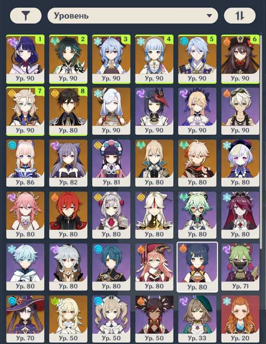 📈 Ранг: 55 🧍♀️ Персонажи: Райден, Сяо, Дилюк, Ху Тао, Гань Юй, Чжун Ли, Альбедо, Шэнь Хэ, Кадзуха, Ци Ци, Аято, Мона и другие ✨ Примогемы: 1200