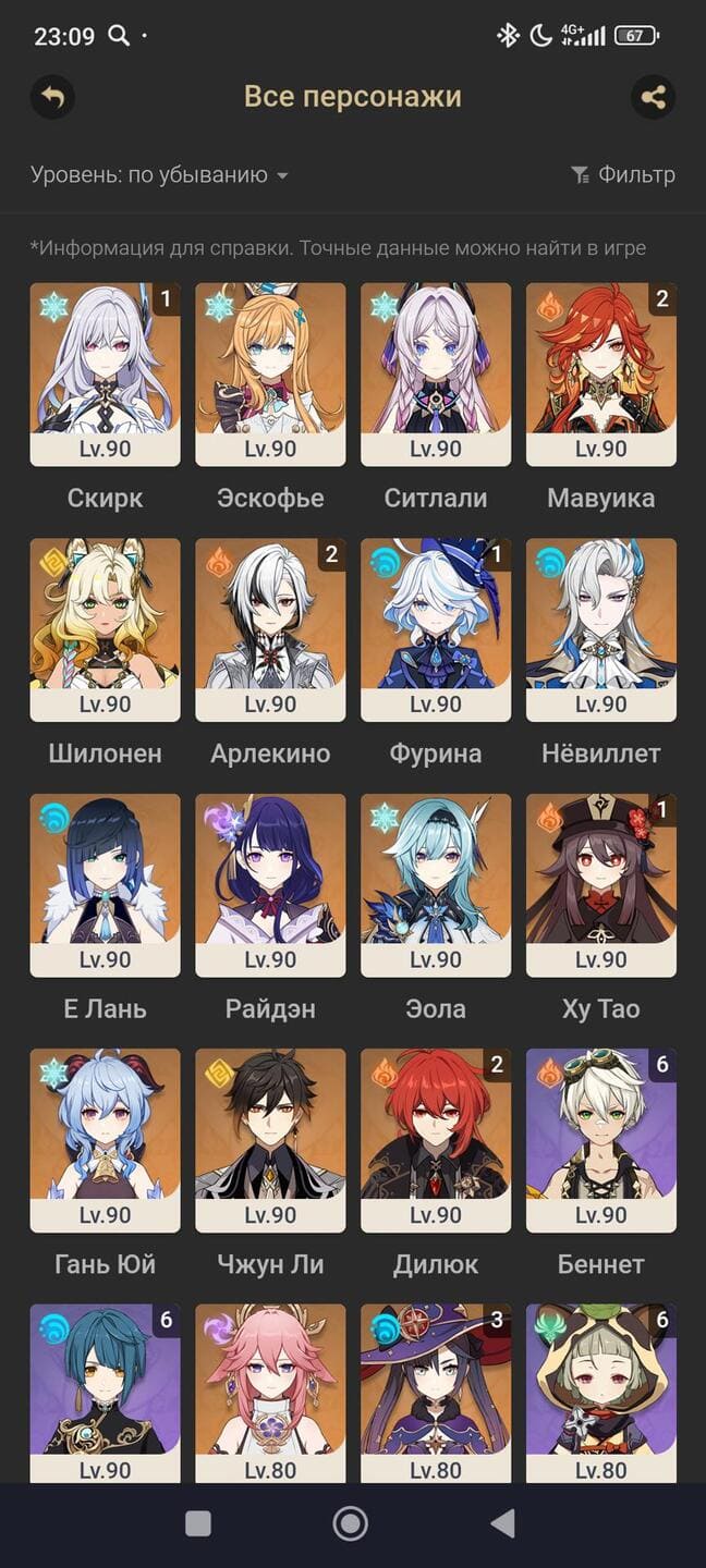 📈 Ранг: 60 🧍♀️ Персонажи: Мавуика, Шилонен, Клоринда и другие 🦾 Оружие: 5 звезд ✨ Примогемы: 456