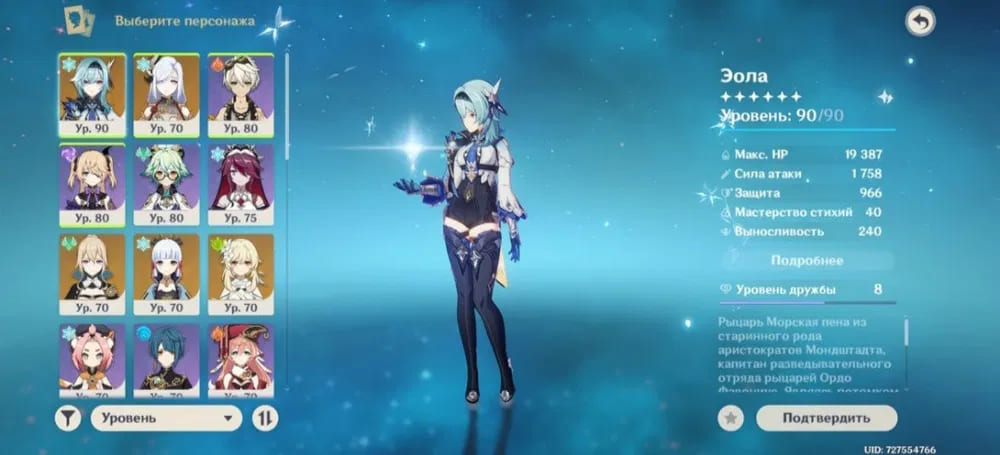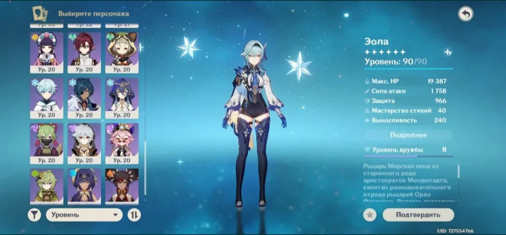 🧍♀️ Персонажи: Эола, Ци Ци,Тарталья, Аяка, Джинн, Шэнь Хэ и другие