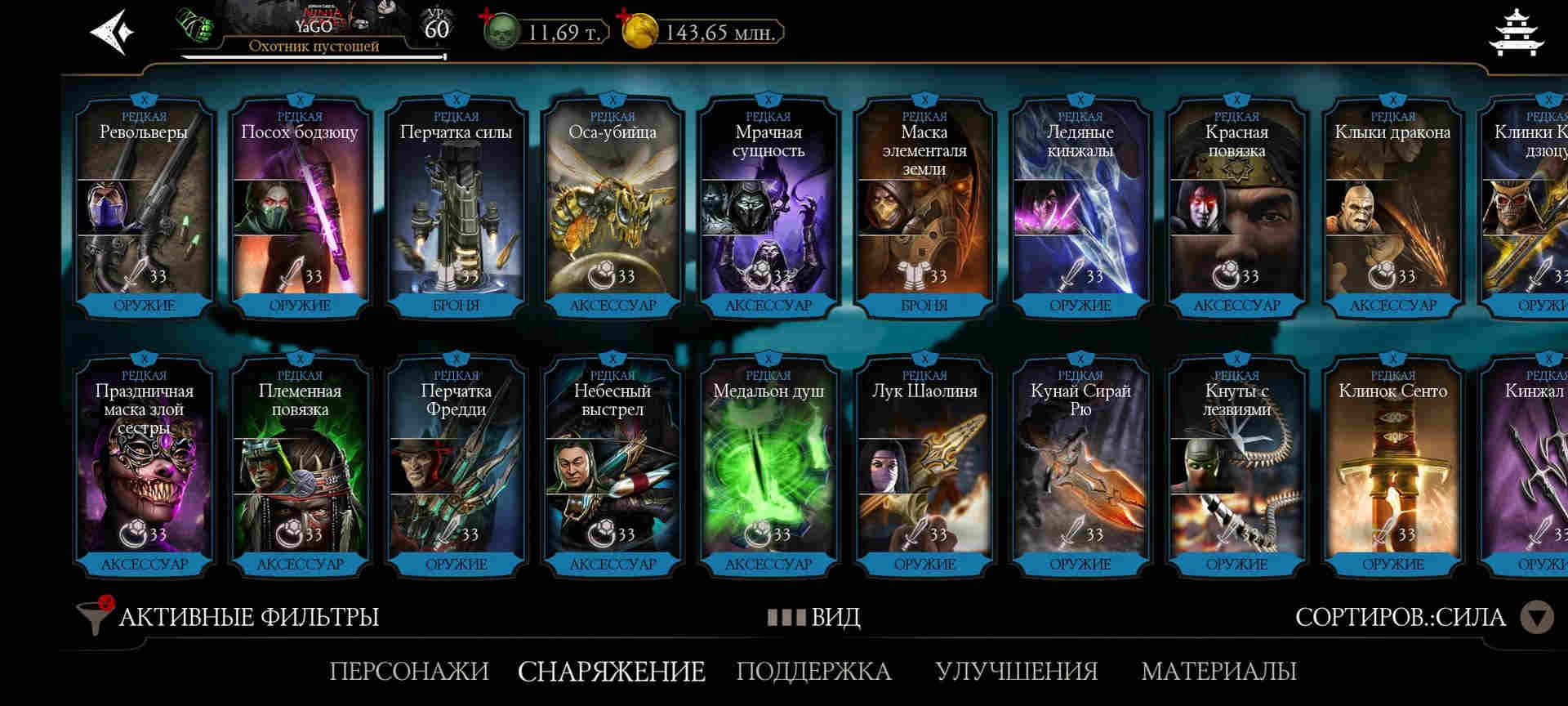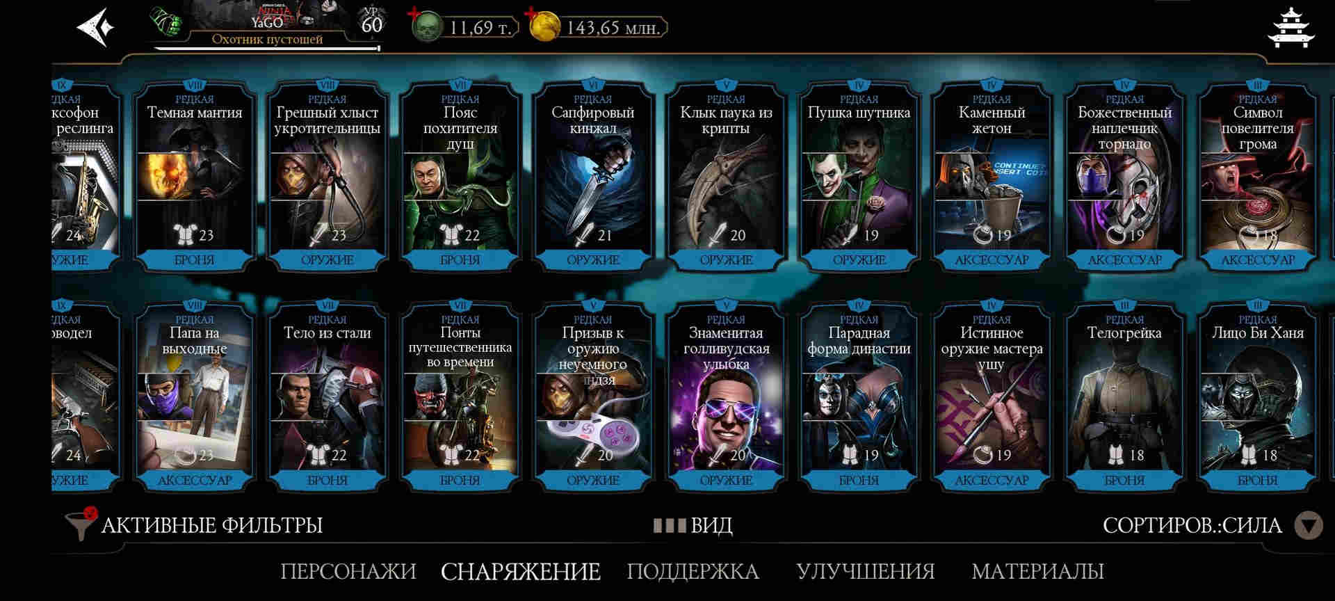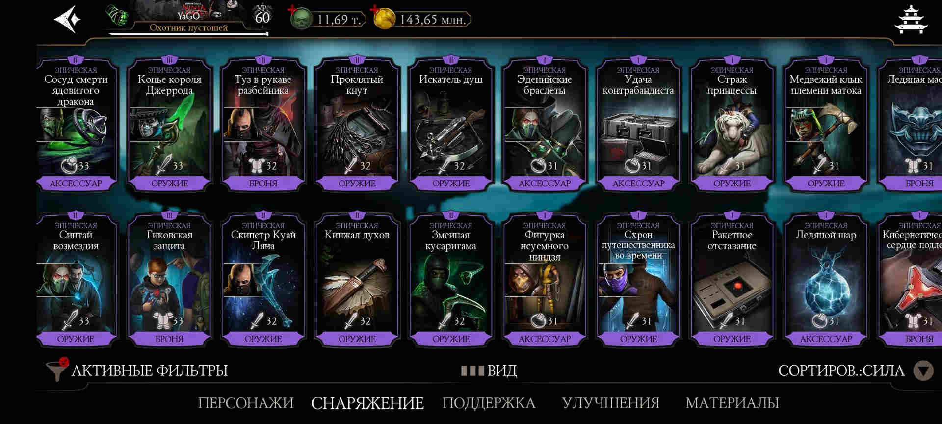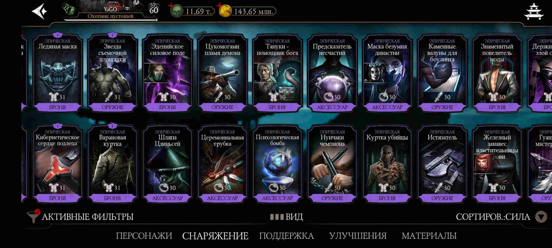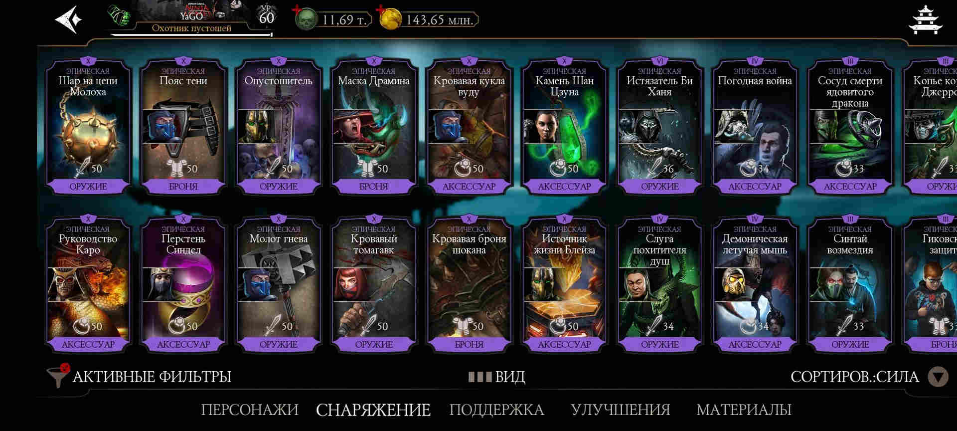 ⚡Практически все бруталити. Все френдшипи. Правктически все эпики из башен, редкое башенное - много на Х, все остальное редкое - на Х. Есть маска Драмина на Х лвл. 102 очков талантов.