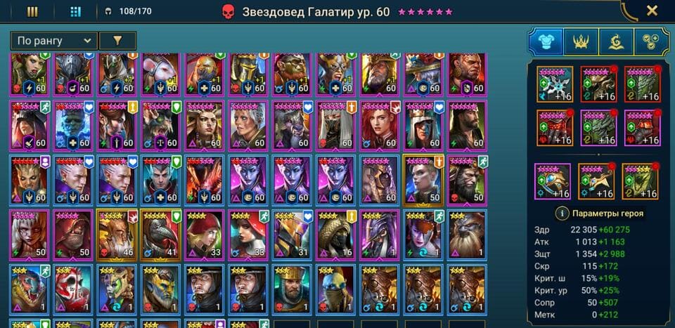 ⚡Уровень: 95 🔥Количество героев:: 108 💪Сила: 4,83 млн
