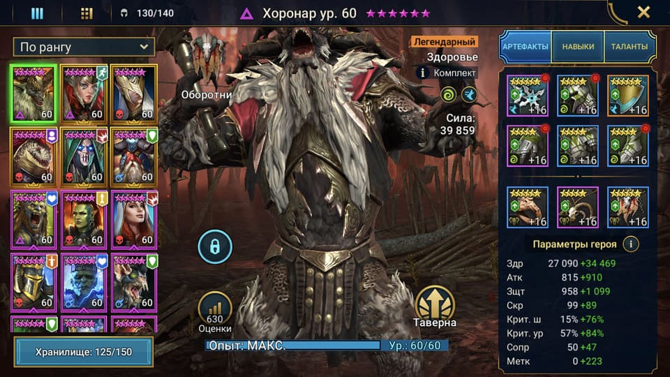⚡Уровень: 54 🔥Количество героев:: 141 💪Сила: 700к