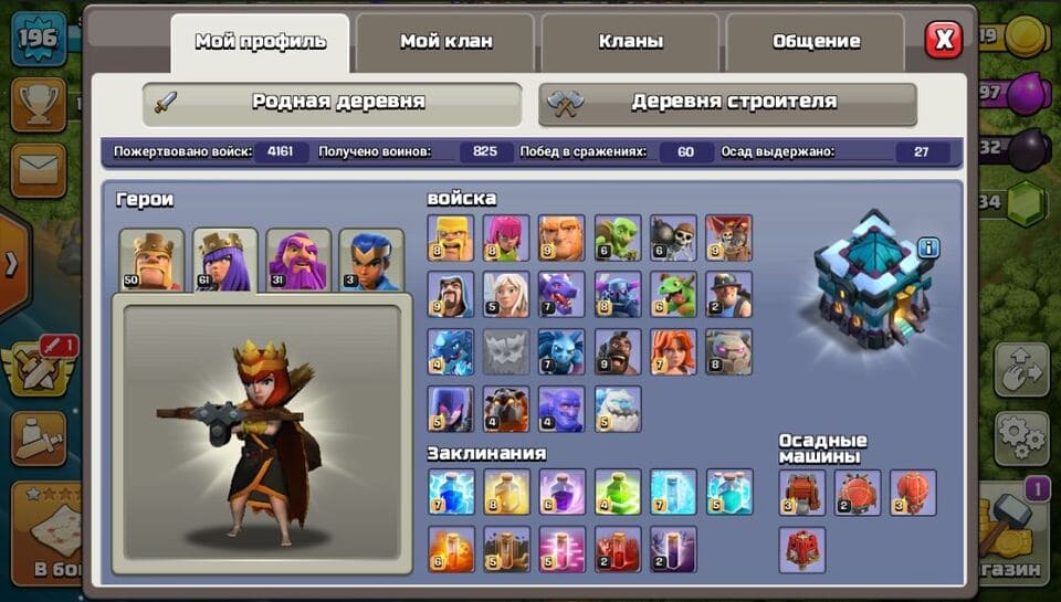 💪Герои уровень: Король (50), Королева (61), Хранитель (31), Чемпион (3);