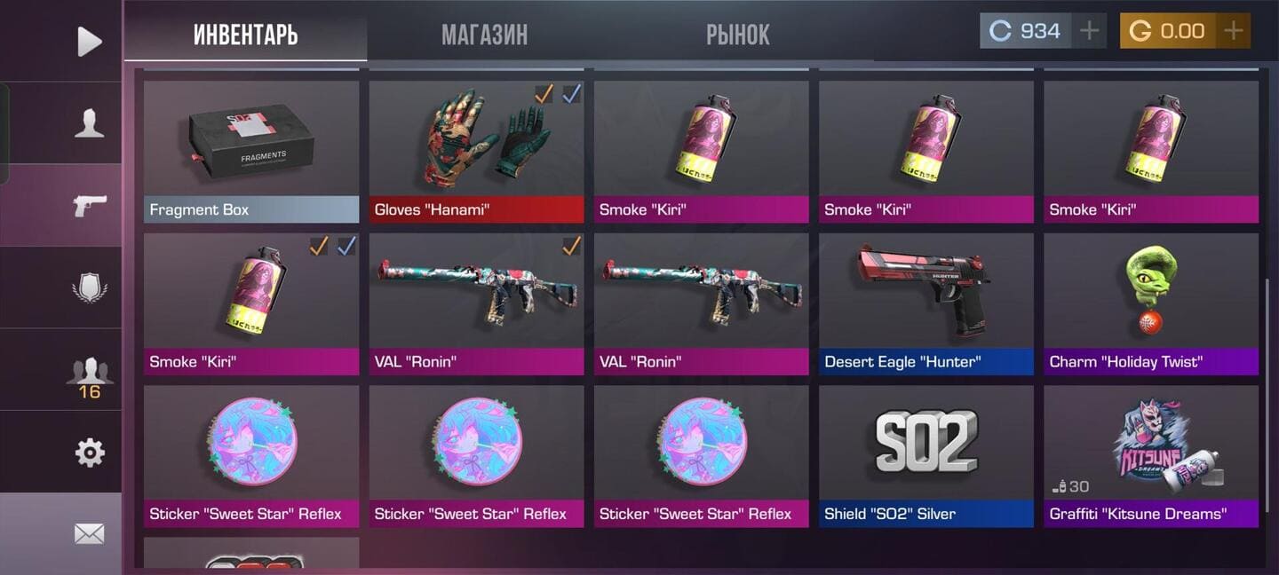 💰Голда: 1868.55; 🧤Перчатки: "Fossil"; 🔪Ножи: Kunai "Poison"; ⭐️Редкие скины: 3