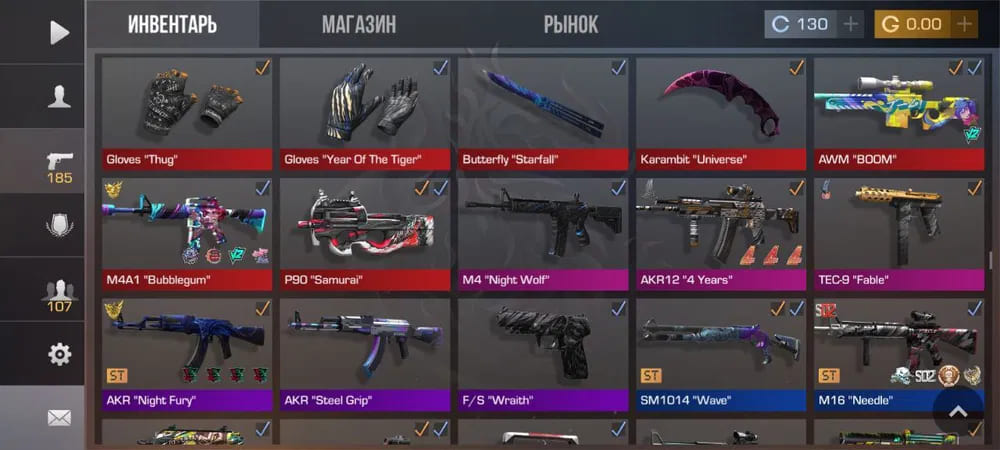💰Голда: 172.48; 🧤Перчатки: "Shatter"; 🔪Ножи: Butterfly "Starfall" ⭐️Редкие скины: 13