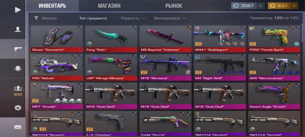 💰Голда: 9.27;🔪Ножи: 2;⭐️Редкие скины: 7