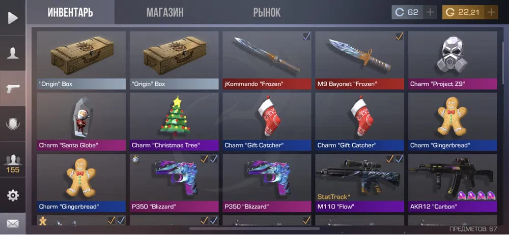 💰Голда: 19.93;🔪Ножи: 1;⭐️Редкие скины: 15