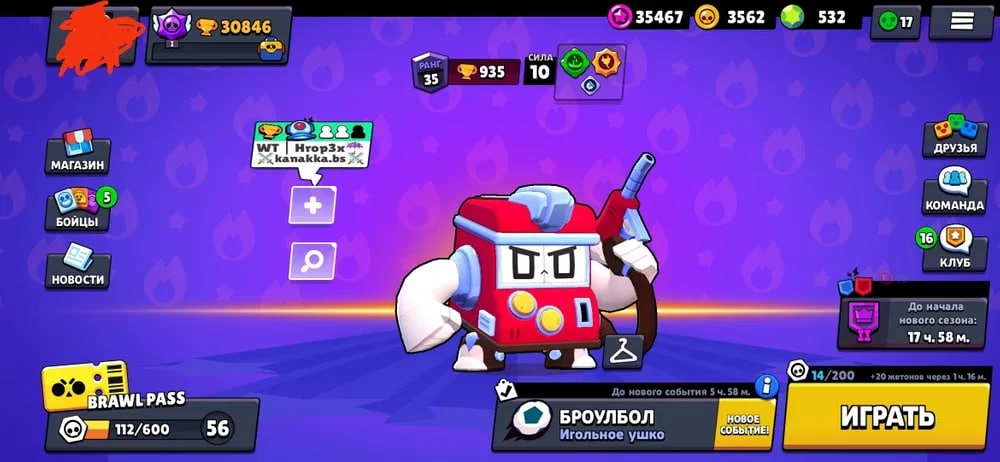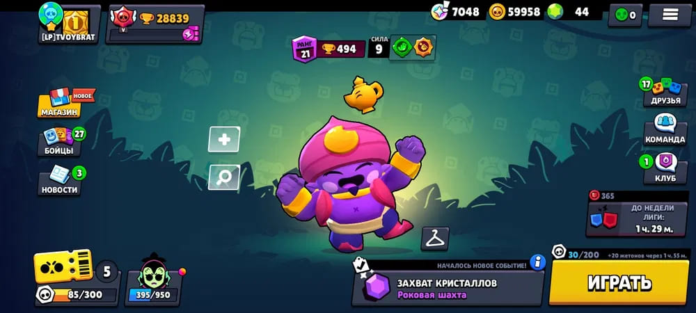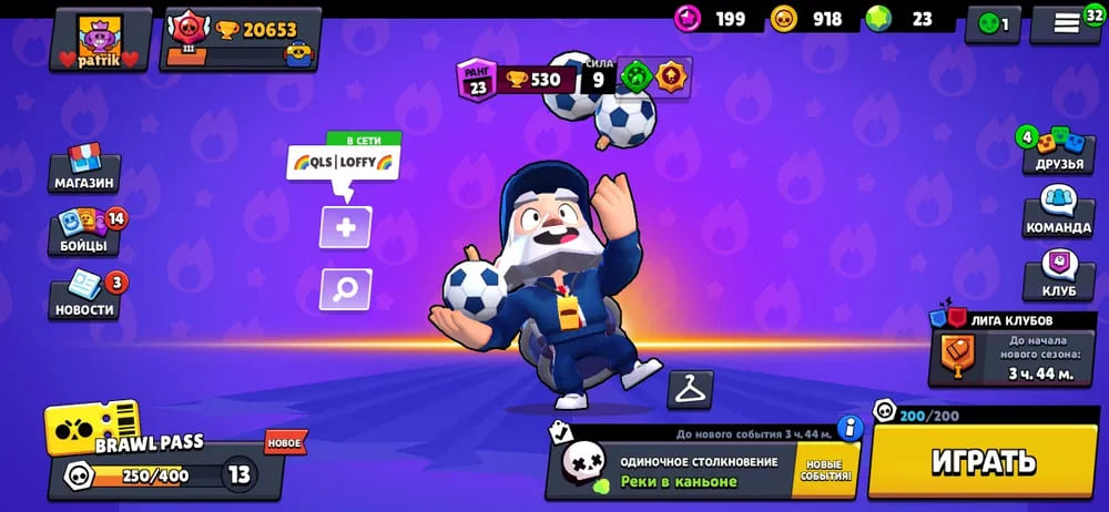 🏆Кубков: 19560; 💪Бойцов: 53/80; ⚡Леги: Ворон, Вольт;