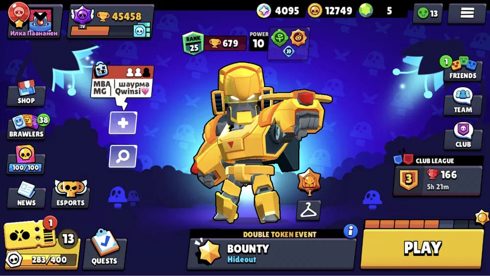 🏆Кубков: 45458; 💪Бойцов: 68/72; ⚡Леги: Леон, Спайк, Амбер, Ворон, Сэнди, Честер;