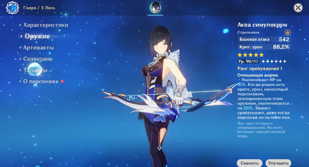 📈 Ранг: 60 🧍♀️ Персонажи: Е Лань, Ху Тао, Джинн и другие 🦾 Оружие: 5 звезд ✨ Примогемы: 340