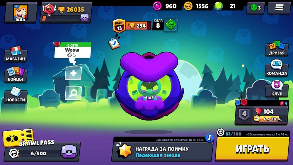 🏆Кубков: 26035; ⭐Уровень: 174; 💪Бойцов: 60/72; ⚡Леги: Леон, Спайк, Амбер, Ворон, Сэнди, Мег;