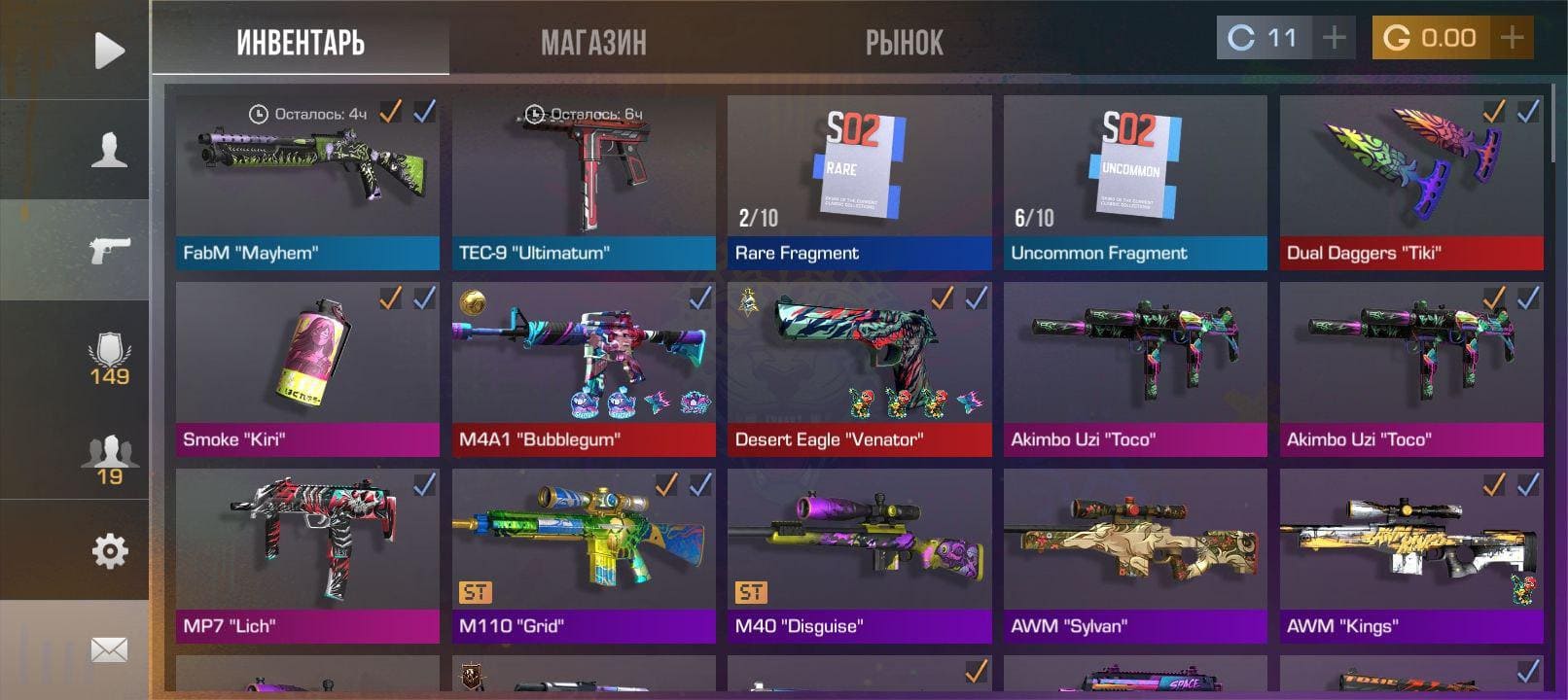 💰Голда: 27.39; ⭐️Редкие скины: 5