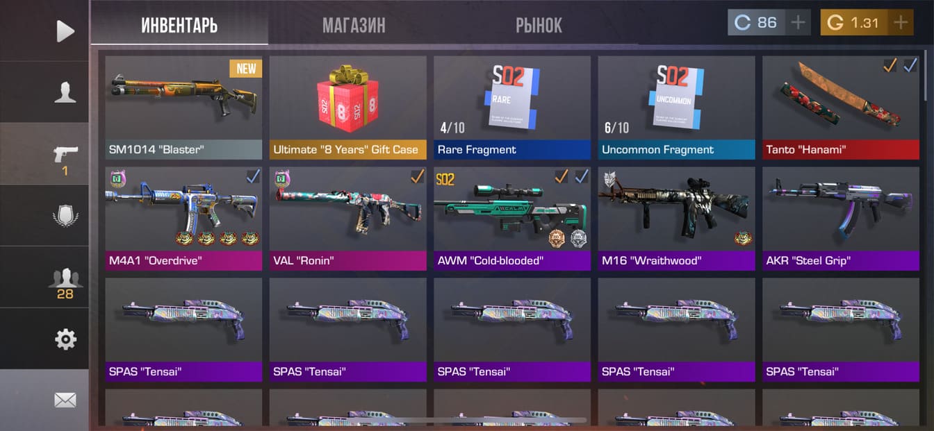 💰Голда: 1.31; 🔪Ножи: Tanto "Hanami" ⭐️Редкие скины: 3