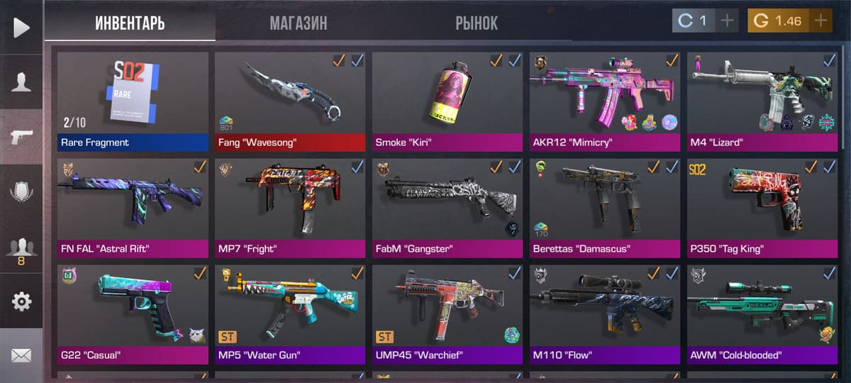 💰Голда: 1.46; 🔪Ножи: Fang "Wavesong" ⭐️Редкие скины: 1