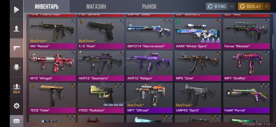 ⭐️Редкие скины: AKR "Dragon", AWM "2 Years Gold", FnFal "Phoenix Risen", P90 "Samurai", UMP45 "Beast", USP "Geometric", G22 "Nest";