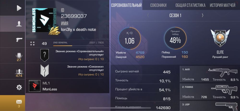 🎖Медали: "Veteran 2020", "New Year Madness", "Progect Z9 Gold", "Competitive", 3 "New Year 2021", "Revival Silver"