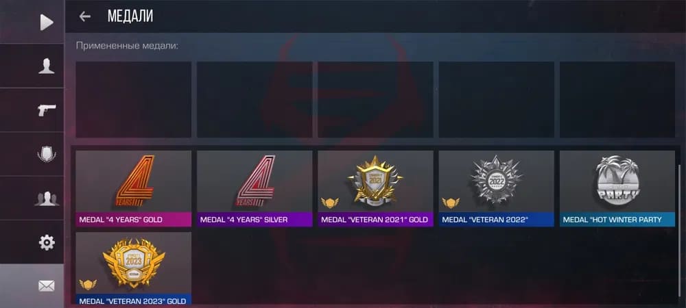 🎖Медали: "Veteran 2023", "Veteran 2022", "Veteran 2021", "4 Years Silver", "4 Years Gold";