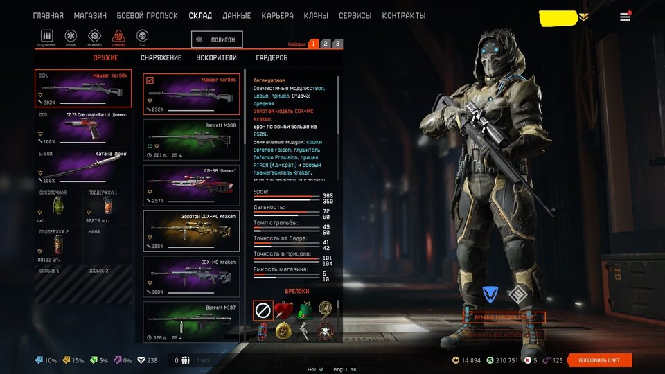 💲Варбаксы - 210751 💵Кредиты - 5, 👑Короны - 14894;