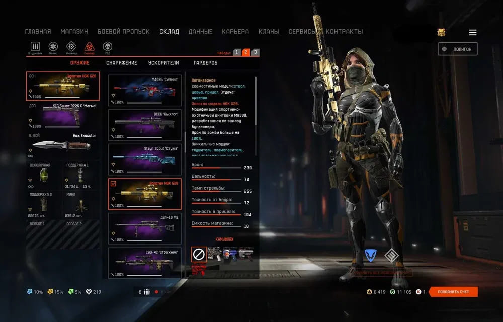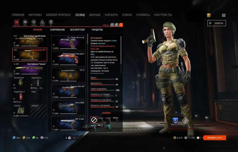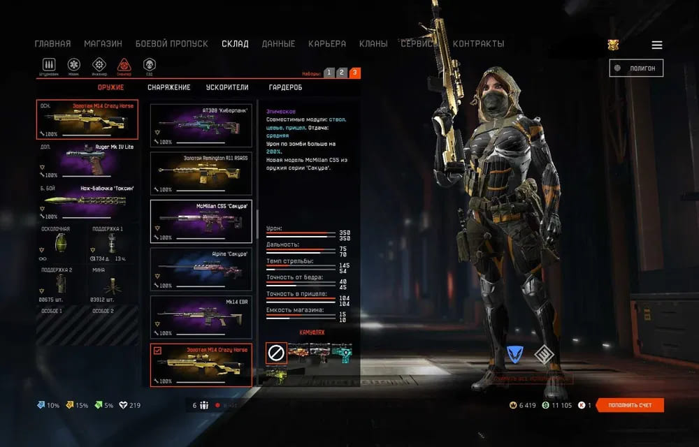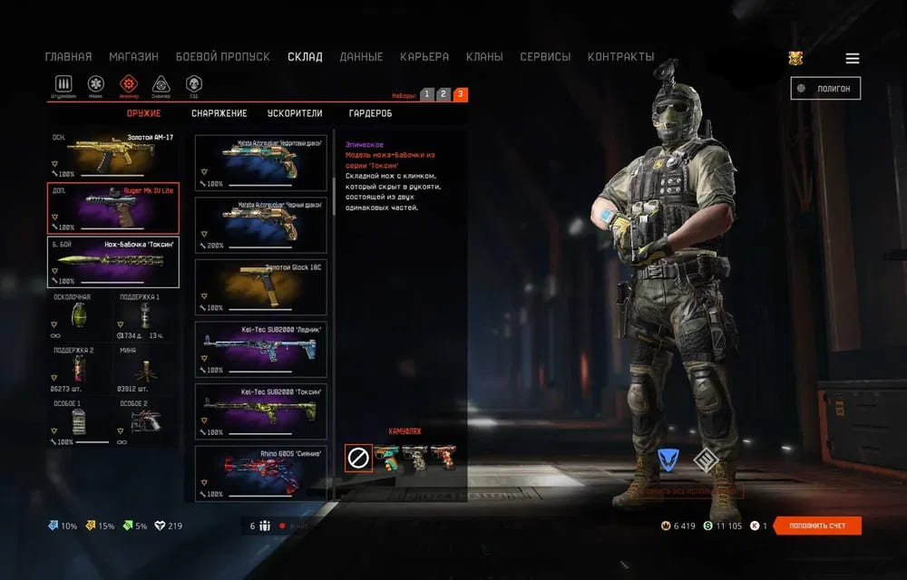 🔫Раритетное оружие: Золотой АК-12, Золотой ACR, Золотой Glock 18C, Золотой AM17, Золотой HGK G2B, Золотой M14 Crazy Horse, Золотой ПКП "Печенег", TEC-9;