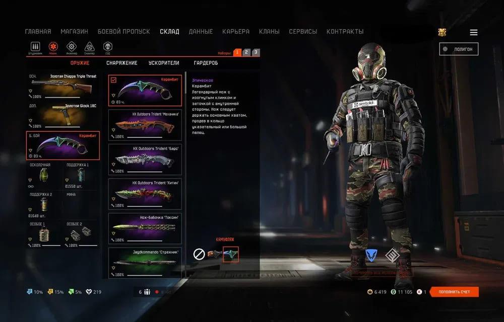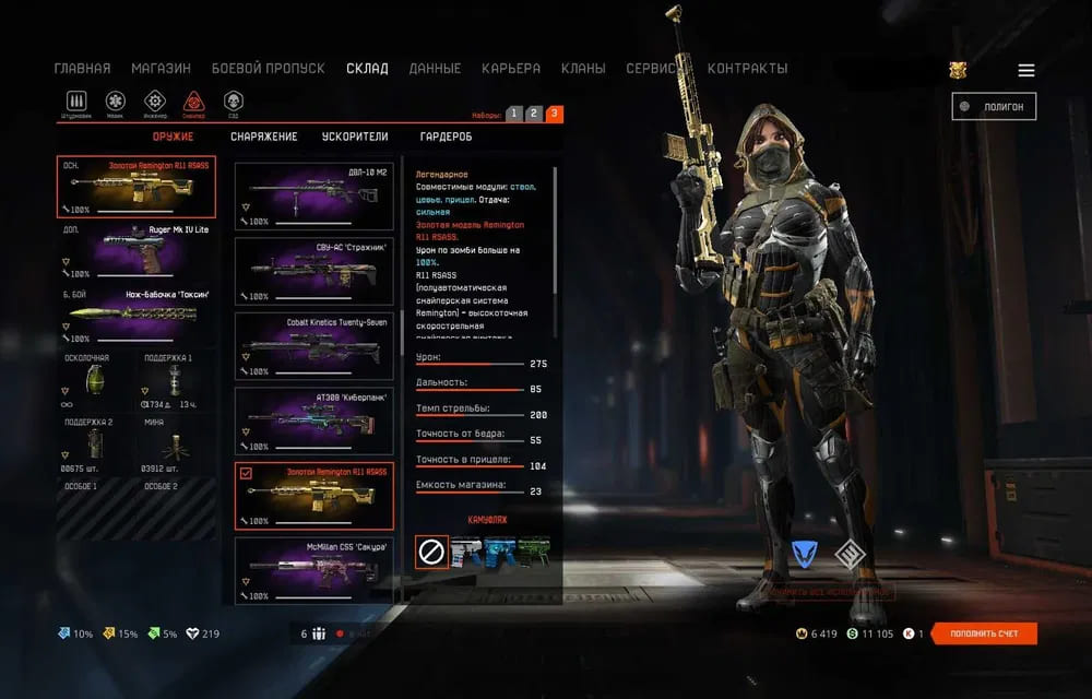 💲Варбаксы - 11105 💵Кредиты - 1 👑Короны - 6419;