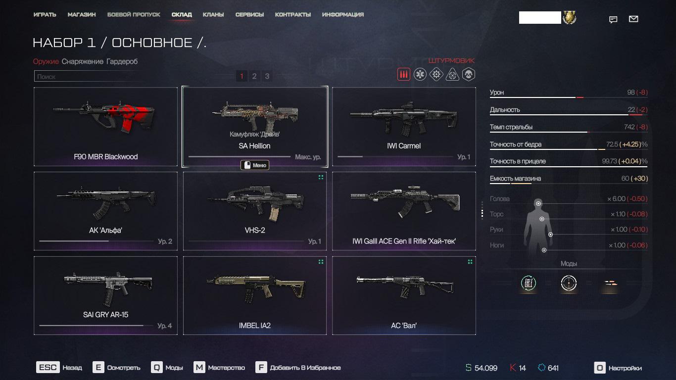 💲Варбаксы - 54099, 💵Кредиты - 14, 👑Короны - 641;
