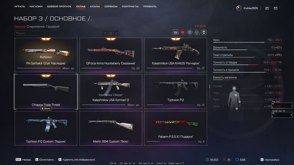 💲Варбаксы - 16613, 💵Кредиты - 51, 👑Короны - 548;