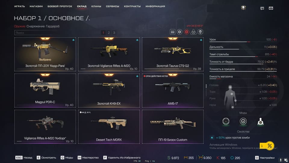 💲Варбаксы - 9872, 💵Кредиты - 185, 👑Короны - 295;